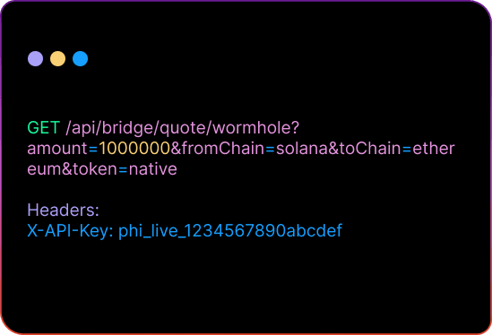 Cross-chain bridge quotes with Wormhole and deBridge integration.